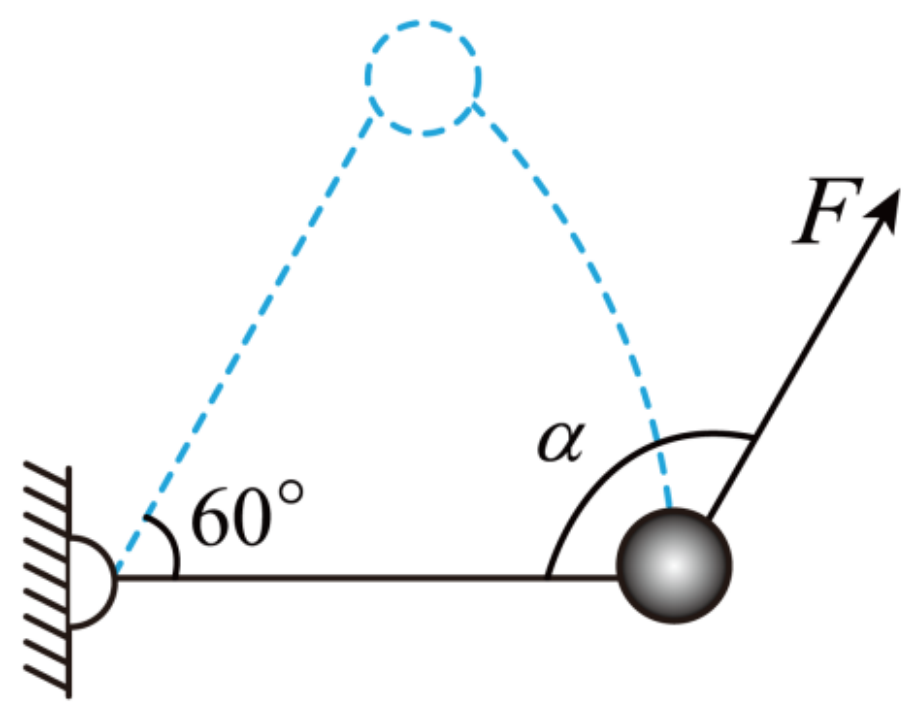 4.(多选)如图,轻杆一端连在光滑的铰链上,另一端固定着质量为m的小球,初始时,在球上施加作用力F使杆处于水平静止,力F和杆的夹角α=120°。现保持α角不变,改变力F的大小缓慢向上旋转轻杆,直至杆与水平方向成60°角,在这个过程中(  )