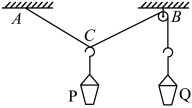[详解]AB.对砂桶Q分析有,Q受到细绳的拉力大小 T=G_{\mathbb{Q}}ACBC之间的夹角为\theta,对C点分析可知c点受三个力而平衡,由题意知, C点两侧的绳张力相等,故有