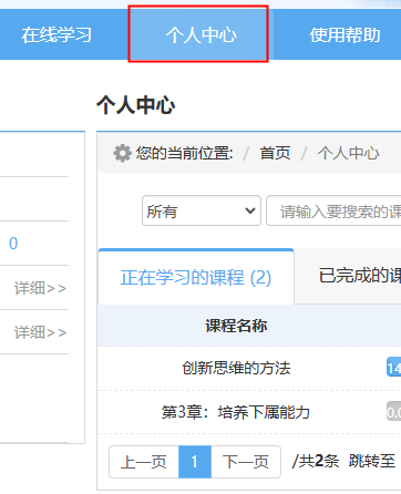 6.点击导航栏-–个人中心,查看正在学习课程是否为0,如果是0,重新回去选课